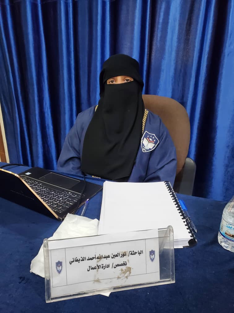 وتشكلت لجنة المناقشة والحكم من: استاذ إدارة الأعمال في الأكاديمية اليمنية الأستاذ الدكتور أحمد محمد الشامي- مشرفاً ،واستاذ إدارة الأعمال في جامعة صنعاء الأستاذ الدكتور عبدالله عبدالله السنفي -مناقشاً ورئيساً، واستاذ إدارة الأعمال المساعد في الأكاديمية اليمنية الدكتور عبدالكريم محمد الدعيس – مناقشاً ، وبدأت جلسة المناقشة التاسعة صباحاً في قاعة المناقشات بمقر الأكاديمية اليمنية، حيث افتتح رئيس اللجنة الأستاذ الدكتور عبدالله السنفي الجلسة بالترحيب بالحضور كلاً بأسمه وصفته، ومنح الباحثة خمسة عشر دقيقة لاستعراض ملخص رسالتها من حيث منهجية الدراسة وأهم النتائج والتوصيات.