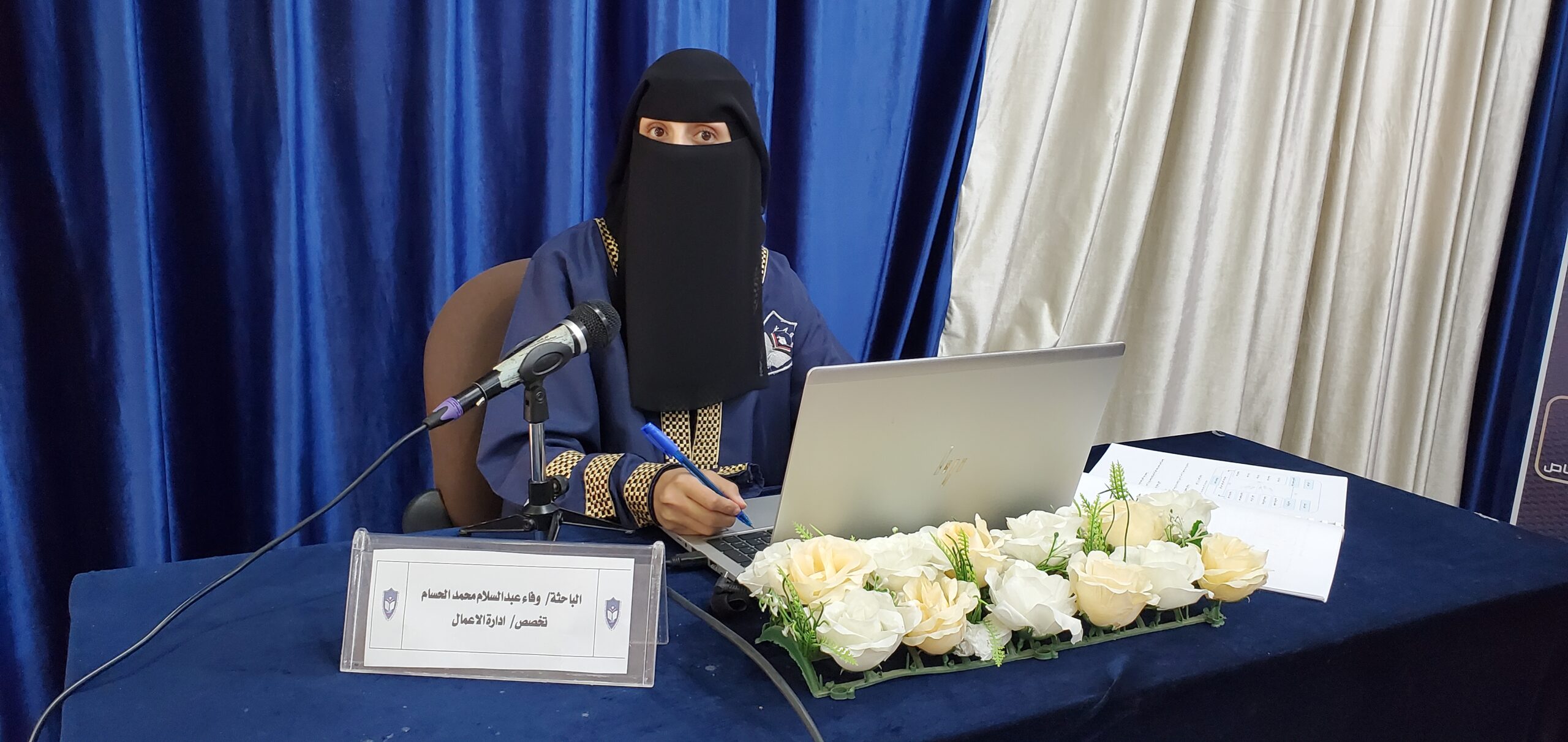 وتشكلت لجنة المناقشة والحكم من: استاذ إدارة الأعمال المشارك في جامعة سبأ الأستاذ الدكتور عبدالرحمن أحمد مانع- مناقشاً ،واستاذ إدارة الأعمال المشارك في جامعة عمران الأستاذ الدكتور نبيل محمد العلفي -مشرفاً ورئيساً، واستاذ إدارة الأعمال المساعد في الأكاديمية اليمنية الدكتور عبدالكريم محمد الدعيس – مناقشاً ، وبدأت جلسة المناقشة الثانية عشرة ظهراً في قاعة المناقشات بمقر الأكاديمية اليمنية، حيث افتتح رئيس اللجنة الأستاذ الدكتور نبيل العلفي الجلسة بالترحيب بالحضور كلاً بأسمه وصفته، ومنح الباحثة خمسة عشر دقيقة لاستعراض ملخص رسالتها من حيث منهجية الدراسة وأهم النتائج والتوصيات.