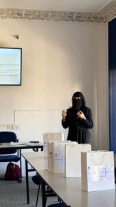 وقد منحت الباحثة عشرون دقيقة لعرض البحث وبدأت المناقشة من قبل أعضاء اللجنة المكونة من الأستاذ الدكتور أحمد الشامي والأستاذ الدكتور عبدالعزيز المخلافي والدكتور محمد الاشول وتشرفت الباحثة بحضور الأستاذ الدكتور خالد الخطيب . والهدف من المناقشة الأولية التأكد من أستخدام الباحثة للمنهجية السليمة وعدم وجود أخطاء جوهرية قبل المناقشة النهائية .وقد أشاد الحاضرون بالجهد الذي بذلته الباحثة وزودت الباحثة بمجموعه من الملاحظات التي تثري البحث وتحسن من جودتة.